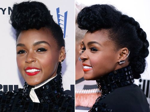 Janelle Monae is known for being anything but traditional. She’s a huge hair inspiration to females across the country and we can certainly see why. Here she steps out wearing a hairstyle you don’t see everyday- but we aren’t complaining. Her full-bodied mohawk looks gorgeous and is definitely an eye-catching ‘do that turns heads. With the splash of red lipstick and thick black eyeliner, her style oozes edgy attitude that is totally funky and wild. If you want something “different”, try on one of Janelle Monae’s quirky hairdos like this full-bodied braided mohawk.